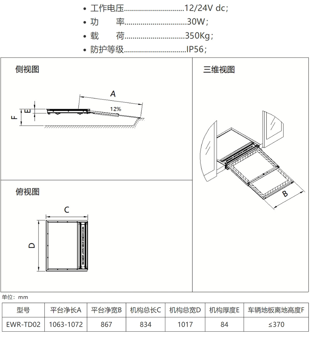 EWR-TD02两级电动伸缩导板(轮椅上车导板)主要应用于城市低地板公交(一级踏步客车)。
