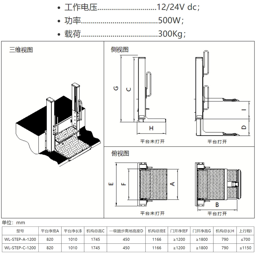 该升降机与WL-STEP-B系列的区别为全自动操作模式;平台折叠及前挡板的操作均为全自动实现,使用方便、可靠。